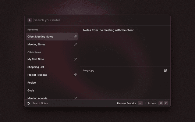 🔎 Search your vault 📋 Copy and paste fields 🔑 Generate TOTP codes ⭐ Mark items as favorites