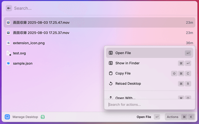 A Raycast extension to search and organize your desktop files.
