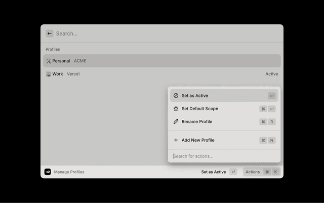 - Manage Profiles: Add, switch, rename, and delete different v0 API key profiles, allowing you to seamlessly manage access to various v0 accounts or scopes.