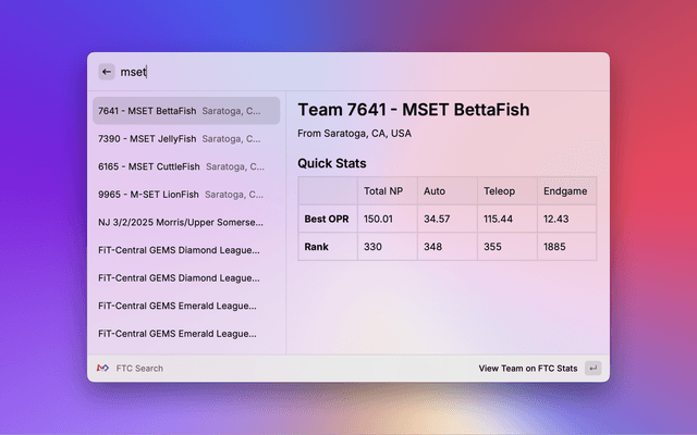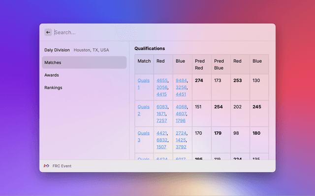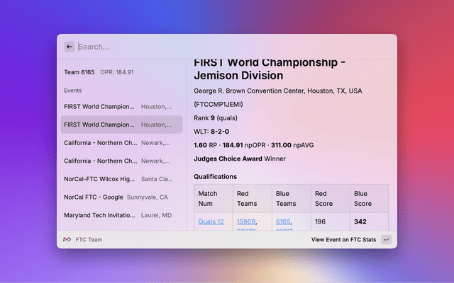 Statistics for FIRST Robotics Competition and FIRST Tech Challenge right at your fingertips.