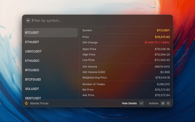 | My Wallet Menu Bar | See your Binance portfolio balance in the menu bar |