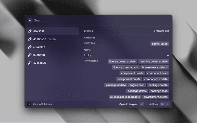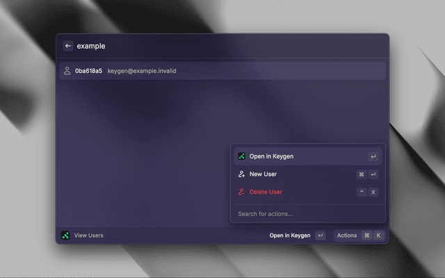 This is a Raycast extension for Keygen - Open, enterprise-grade licensing & distribution. With this extension you can: