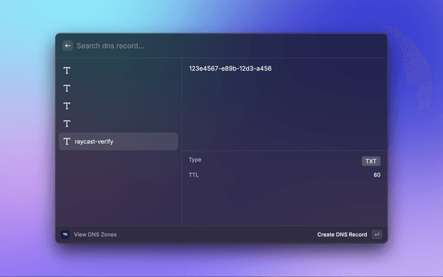 This is a Raycast extension for Manotori. With this extension, you can view domains in your account with their details and events.
