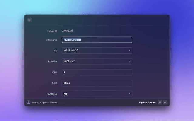 This is a Raycast extension for MyIdlers - a self-hosted web app for displaying, organizing and storing information about your servers (VPS/Dedi), shared & reseller hosting, seedboxes, domains, DNS and misc services.