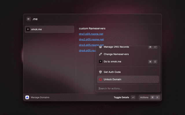 This is a Raycast extension for Spaceship - next-level domain name management. With this extension you can easily manage your Spaceship products. For now:
