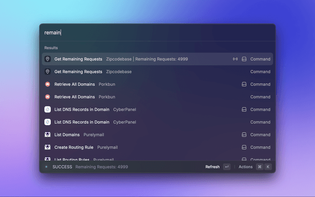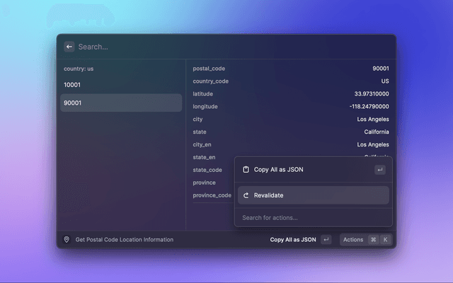This is a Raycast extension for Zipcodebase. With this extension you can lookup postal codes, calculate distances and much more using Zipcodebase API.