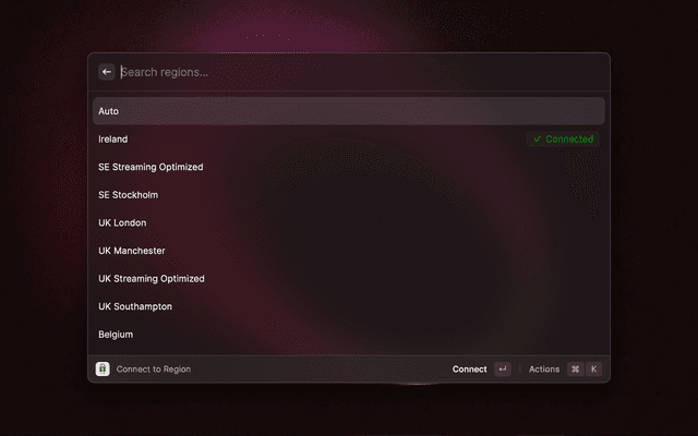 PIA Controls is a simple extension that allows you to control your Private Internet Access VPN connection from within Raycast. Ensure you have Private Internet Access installed.